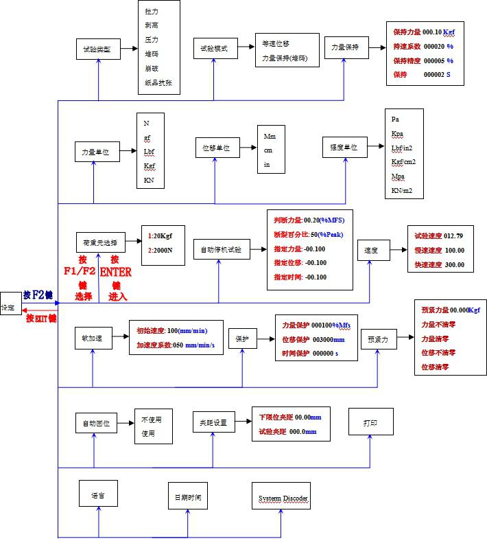 下降:在主界面中,试验停止状态下按对应F2按键为慢速下降,再按一次则为快速下降.